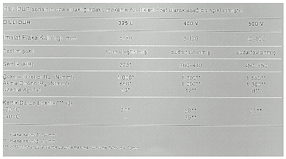 Kullanım alanı en yaygın olan DILLIDUR 400 V ' ye ek olarak, üretimin diğer iki çeliği DILLIDUR 325 L ve DILLIDUR 500 V'dir. DILLIDUR 500 V aşınmaya en yüksek mukavemet göstermek için geliştirilmiştir. Doğal olarak bu çeliklerde kaynak ve işlem DILLIDUR 4 00 V tipine göre biraz farklılık gösterir. 325 L'yi ise; sıcak şekil verilmesi gereken ya da yüksek sıcaklıklarda çalıştırılması gereken, aşınmaya dirençli imalatlarınız için alaşımsız DILLIDUR 275 U tavsiye ederiz. Bu serideki bir başka dur. aşınmaya dirençli ürün de alaşımsız DILLIDUR 275 U dur.