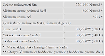 DILLIMAX 690'nın mukavemeti sadece alaşım ile elde edilmeyip aynı zamanda imalat sırasında su içinde söndürme ve bunu takip eden temperleme sayesinde elde edilir.